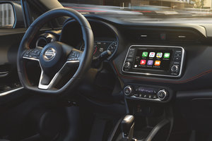 Step inside the 2019 Nissan Kicks and you’re greeted with an interior that’s spacious (much more spacious than the outside would allude to), as well as coloured stitching, soft-touch materials throughout and an easy-to-use infotainment system that also features Apple CarPlay and Android Auto.