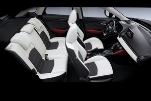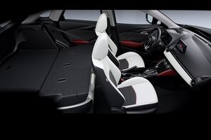 Inside the 2019 Mazda CX-3, the changes are also quite subtle, but also extremel significant. For starters, the cable parking brake was replaced with an e-brake electronic button. The same shift lever remains, despite the real estate around it changing. The 2019 Mazda CX-3 now features details such as faux-suede applique around the dashboard with red accents up front and in the rear seats. And there’s even a new armrest in the rear with cup-holders in the rear now, which really elevates the CX-3 in terms of quality, comfort and space.